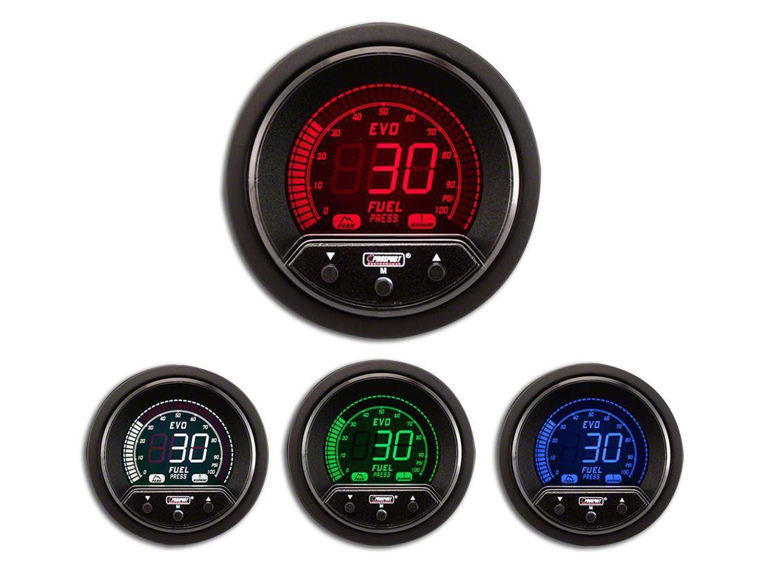 Personalized Alerts. This Prosport Premium Evo Fuel Pressure Gauge has a convenient one-touch interface for setting your fuel pressure alert. You can also access peak recall data to track performance issues over time.