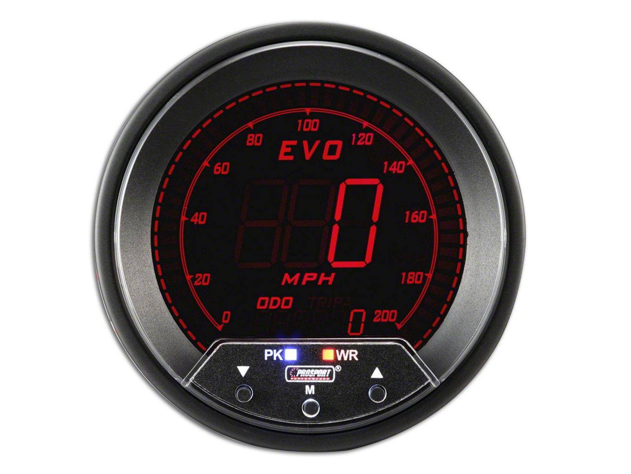 Description. Evo Series 85Mm Speedometer 0-200Mph; Premium Evo Series; Red And Blue And Green And White; Peak And Warning; 2-1/16-Inch