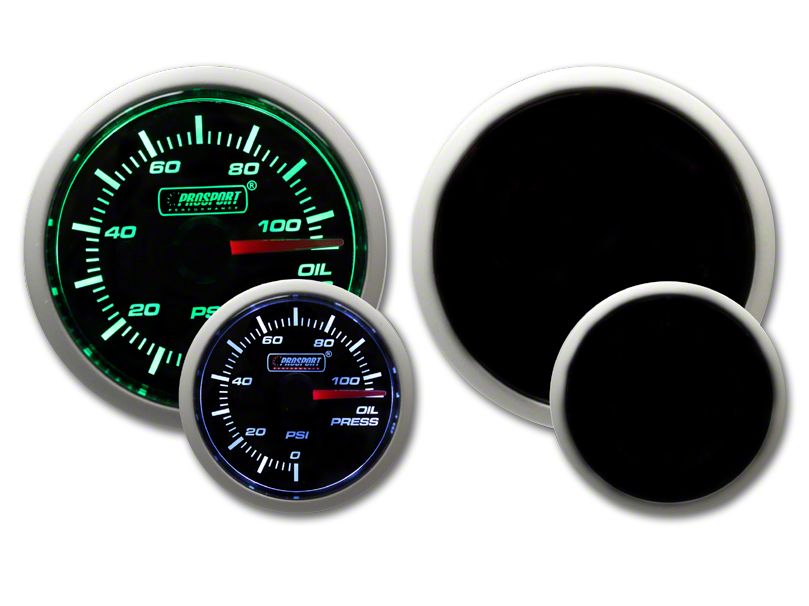 Prosport 52mm Performance Series Oil Pressure Gauge; Electrical; Green/White (Universal; Some Adaptation May Be Required)