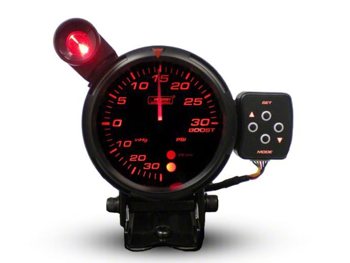 Upgrade Your Performance. Stay on top of the data you need with this Prosport Tri-Color Display Boost Gauge - White/Blue/Amber - 80mm. It has a Swiss-made stepper motor with electronic movement for impeccable accuracy, and the three-color LED display lets you read the stats at a glance. The outer bezel is adjustable, and the warning mark can be set manually for convenient customization.