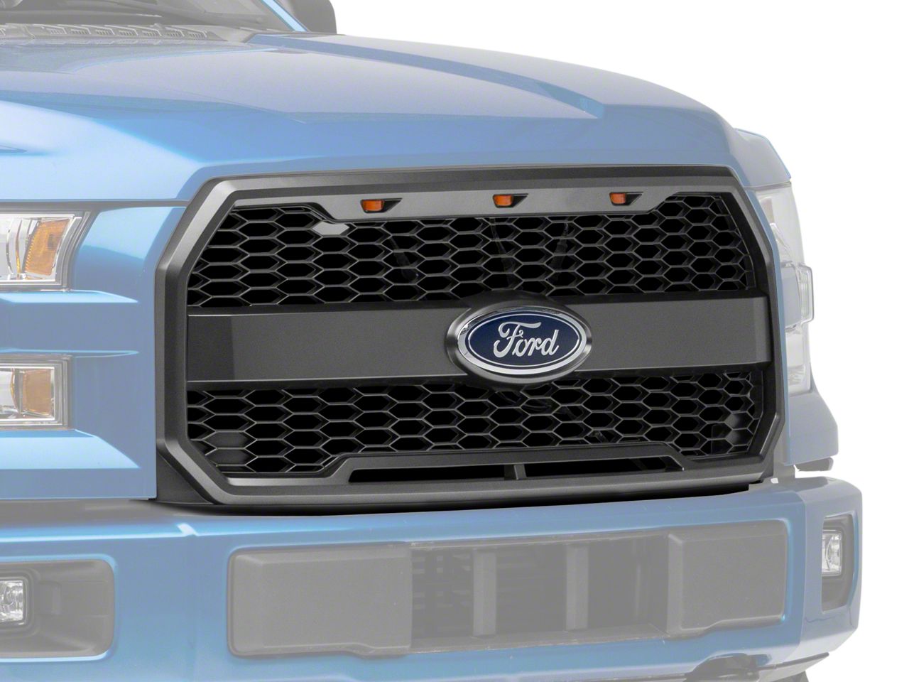 LED Accent Lighting. This Baja Style Grille also includes three high mount amber LED accent lights. These LED accent lights come with a wiring harness that simply splices into your F-150's existing factory headlight harness. The LEDs will then automatically activate in conjunction with your running lights. The eye-catching LEDs not only look great, but will also make your F-150 more visible to other drivers at night and in poor weather conditions.
