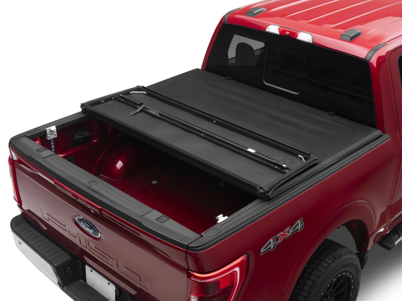 Protect Your Cargo in Style. Add a sleek, clean appearance to your 2021-2026 Ford F-150 while discreetly hiding cargo and tools in the bed with a TruShield Premium EZ Hard Tri-Fold Tonneau Bed Cover. This TruShield Bed Cover features a Tri-Fold design that can fold up to access your bed, or when hauling larger items. As an added bonus, you may even see up to a 10% increase in fuel mileage because of its aerodynamic design.