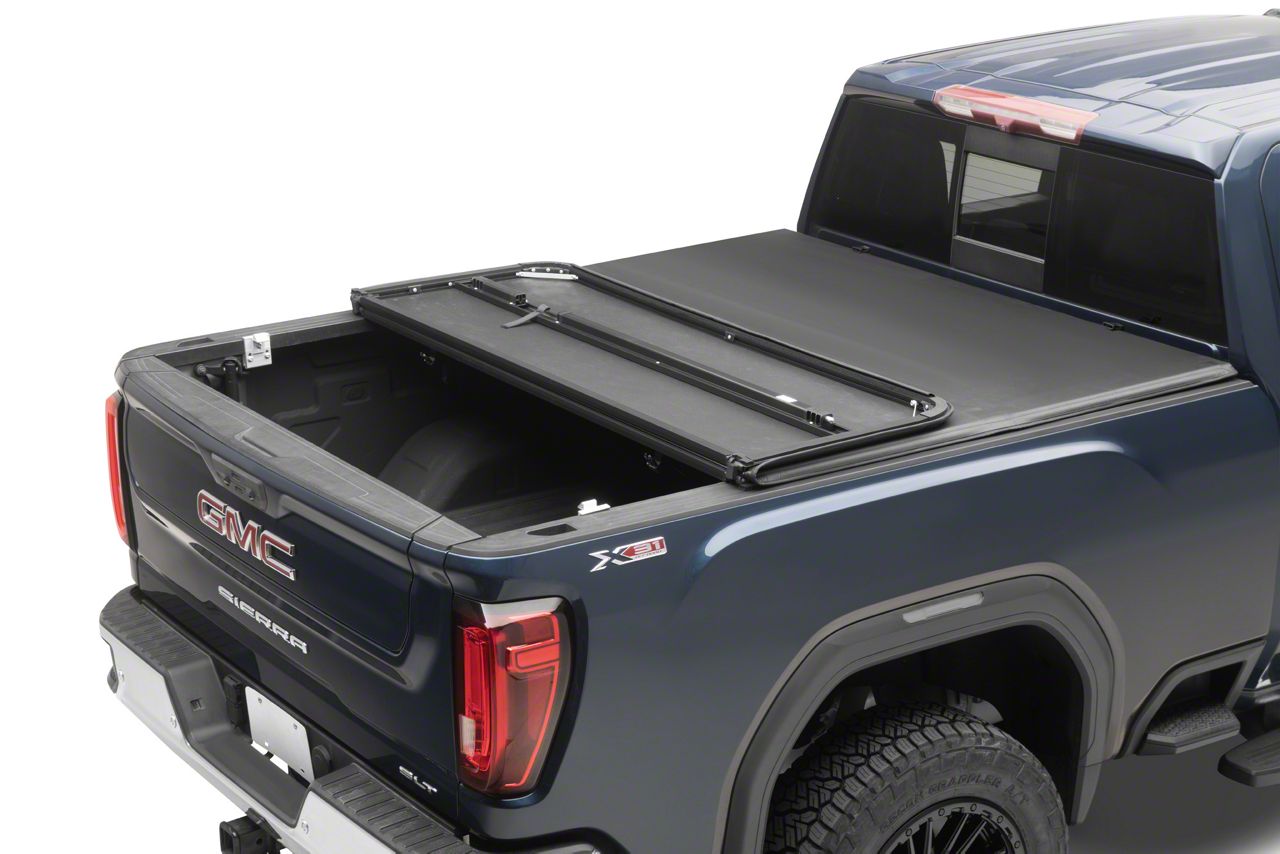 Protect Your Cargo in Style. Add a sleek, clean appearance to your 2020-2026 2500 Sierra while discreetly hiding cargo and tools in the bed with a Proven Ground Premium EZ Hard Tri-Fold Tonneau Bed Cover. This Proven Ground Bed Cover features a Tri-Fold design that can fold up to access your bed, or when hauling larger items. As an added bonus, you may even see up to a 10% increase in fuel mileage because of its aerodynamic design.