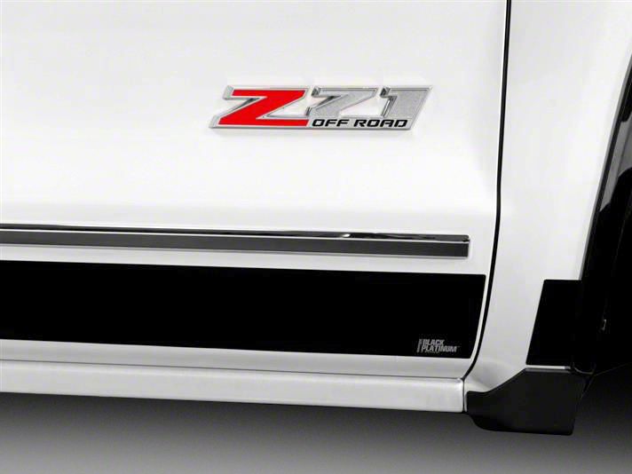 Added Protection. Rocker panels support the roof and connect the front and rear section of your 2007-2013 Chevy Silverado. This section of your truck also gets damaged a lot as it is hit by rocks and debris when going off-roading. Support your rocker panels by installing these Black Platinum Rocker Panels. The panels included in this set are made of 304 stainless steel so they won't deform or get damaged as easily as stock. Plus, they also feature a black platinum design that's sure to fit with your truck's theme.