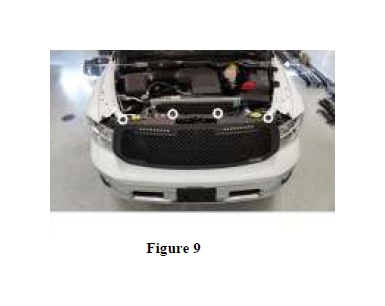 10. Reinstall 4 - 10mm bolts to secure the grille. Adjust upper brackets and grille as needed to align the grille in the vehicle. (Refer to Figure 9)