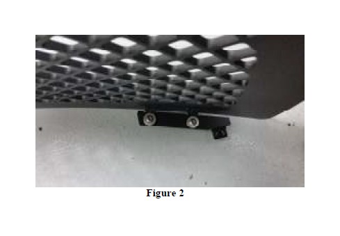 2. Use a 5/32" hex key and 7/16" wrench to install the 6 provided nuts, bolts and washers. Install the two upper mounting brackets to the 6 mounting tabs on the back side of the grille. (Refer to Figure 1 - Passenger side shown.)