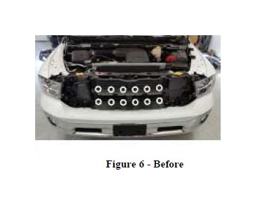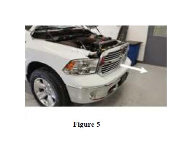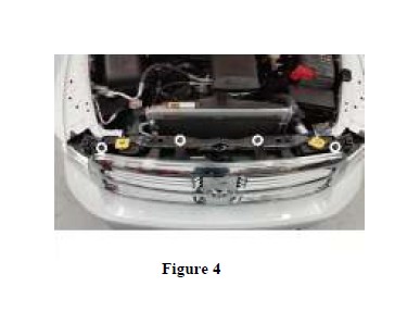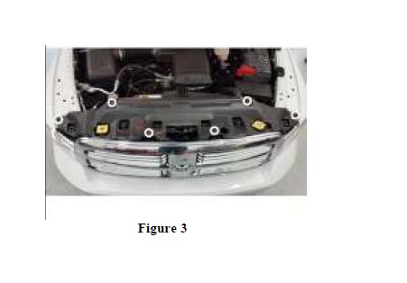 6. The grille will still be secured at the bottom with push clip retainers. To remove, pull grille firmly forward and away from the truck. (Refer to Figure 5)