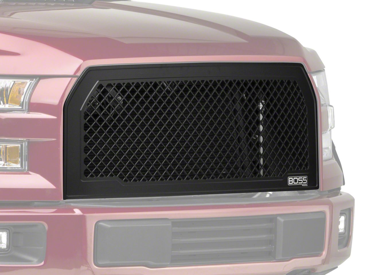 Aggressive Styling. When the F-150 rolled off the assembly line, they were equipped with a decent looking grille, however if the factory grille doesn't fit your style, then it's time to replace it with the Boss Upper grille. The manufacturer custom designed this mesh upper grille to be a direct replacement of the factory one. With its sinister black finish, it's the perfect piece to match your other black accents on your truck to achieve the popular black-out look.