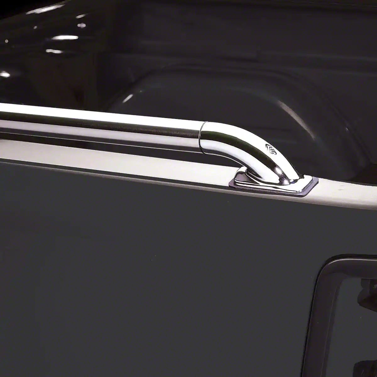 Quality and Strength. These bed rails feature high-polished 1.75" diameter stainless steel tubes, providing a sleek and robust framework. Finished with a black powder coat, these bed rails not only offer added protection against the elements but also contribute to a stylish, contemporary appearance. Equipped with Nylon 66 injection-molded ends, these bed rails provide a custom fit to your truck, ensuring a secure and stable installation. The weight capacity of 500 lbs per side allows for heavy-duty use, perfect for securing cargo during transport.