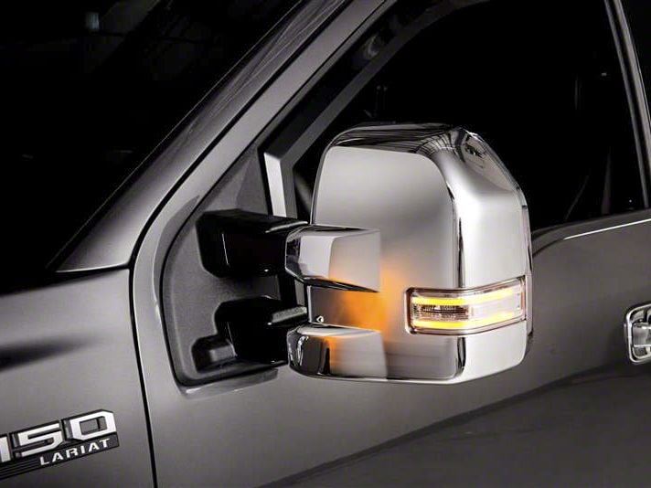 This set of Chrome Mirrors Covers is designed to fit on the 2015-2017 F-150s equipped with the optional Towing Mirrors with Side Markers.