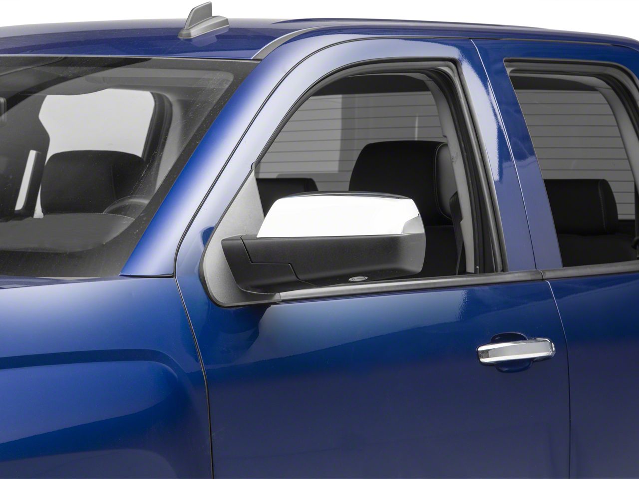 Application. This pair of Chrome Upper Mirror Covers are designed to fit 2014 to 2018 Chevrolet Silverado 1500s.