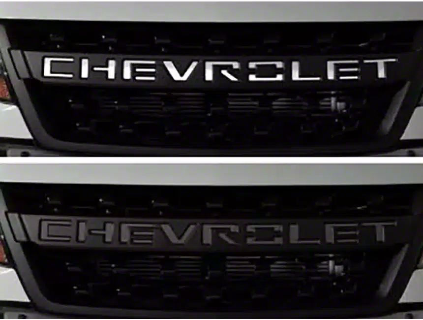 Stylish Tailgate Emblems. The Putco Stainless Steel Tailgate Insert Letters are official GM licensed products, designed to enhance the look of your Chevrolet Colorado. These stylish, over-sized 'Chevrolet' lettering emblems fit perfectly inside the factory lettering tailgate channels, adding a distinctive touch to your vehicle.