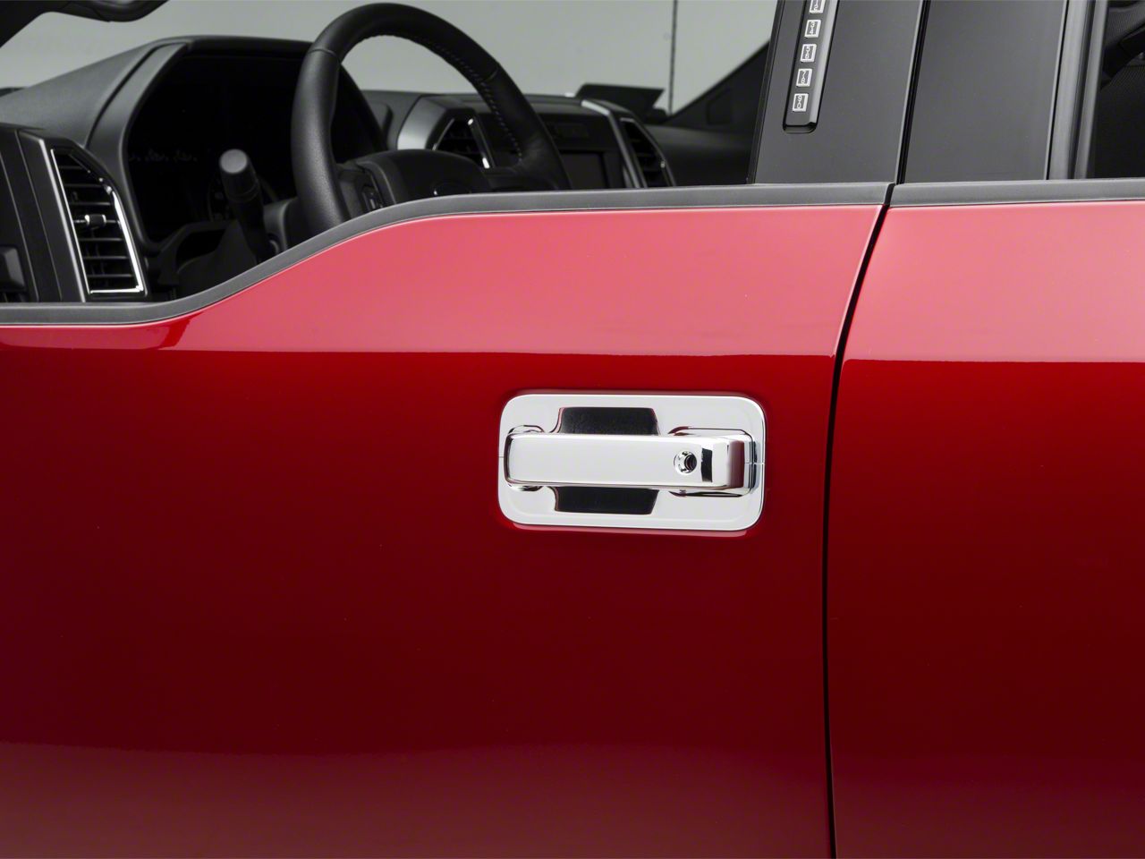 Impressive Style. Complete your chrome'd out build with these Door Handle Covers. They boast an easy installation and are custom fit for your F-150. Designed to match your pickup's OEM chrome, these Door Handle Covers will make upgrading a effortless process. They're perfect for use with other bright aftermarket accessories and will give your rig a truly custom appearance when paired with any other exterior Chrome trim.