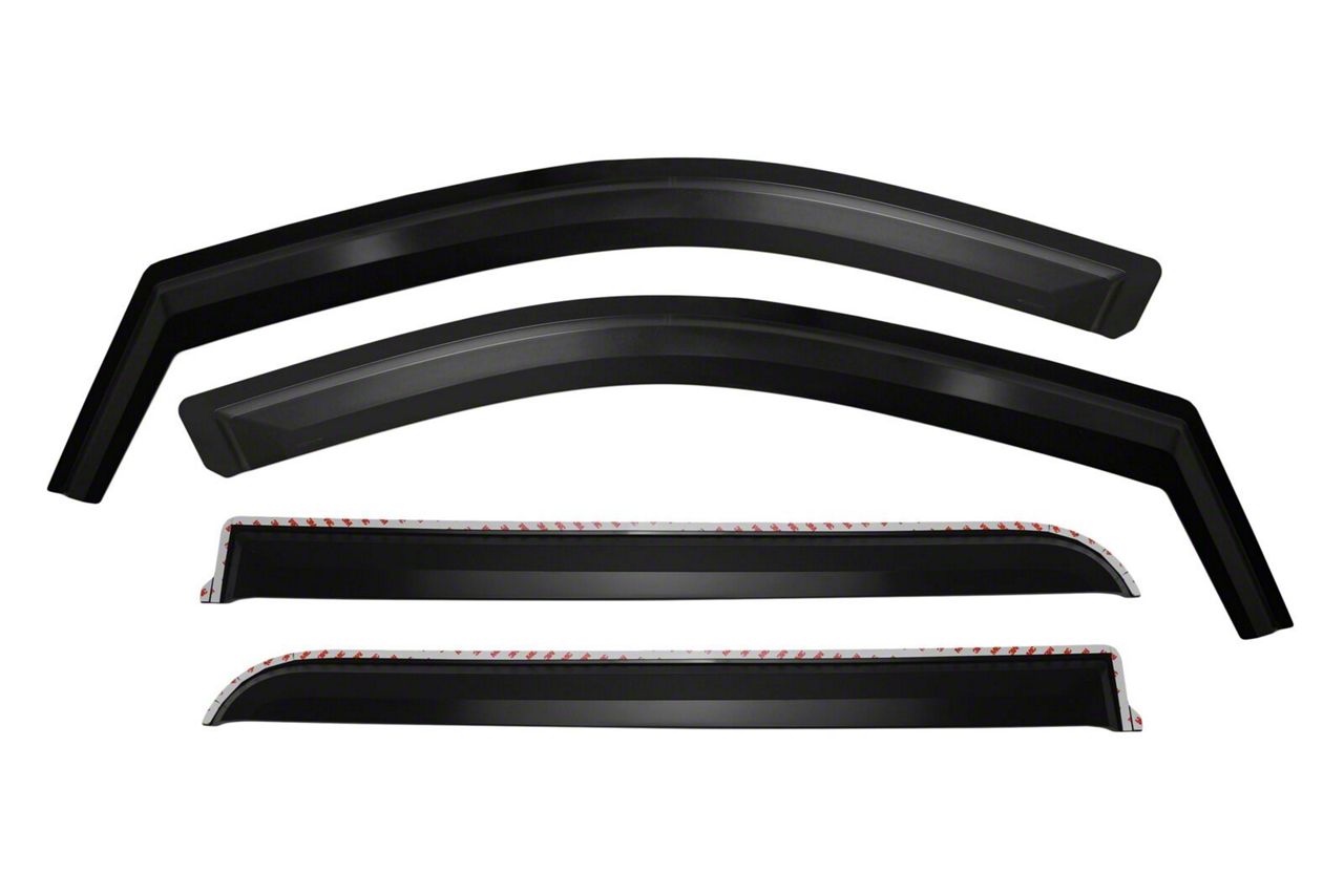 Construction and Appearance. This 4-piece set sees all of its pieces fabricated from ABS plastic. The matte black finish looks cool on any-colored truck, and you get an exact fit because the visors were engineered from OEM CAD data.