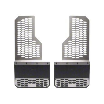 High-Strength Build Quality. These mud flaps' mounting segment is precision-cut and formed from premium stainless steel plates for outstanding strength and corrosion resistance. The mud guards' sails are molded from specially formulated rubber, making them extremely resistant to deterioration. Finally, the Hex Shield attachments receive a brushed finish, giving the components a classy style.