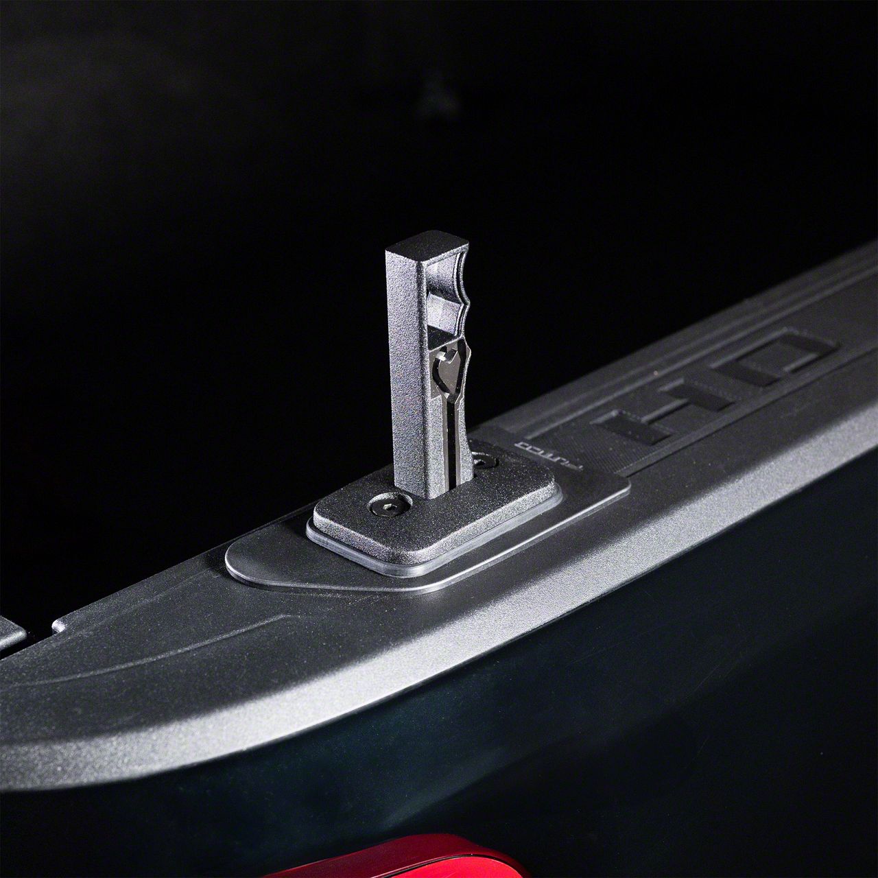 Construction and Appearance. Built from solid die-cast aluminum, this handle/tie down is designed to withstand heavy-duty use while delivering long-term durability. The textured black finish complements your truck’s rugged appearance while offering resistance to scratches and corrosion. Designed in Des Moines, Iowa, this component features a stylish profile that blends form and function seamlessly.