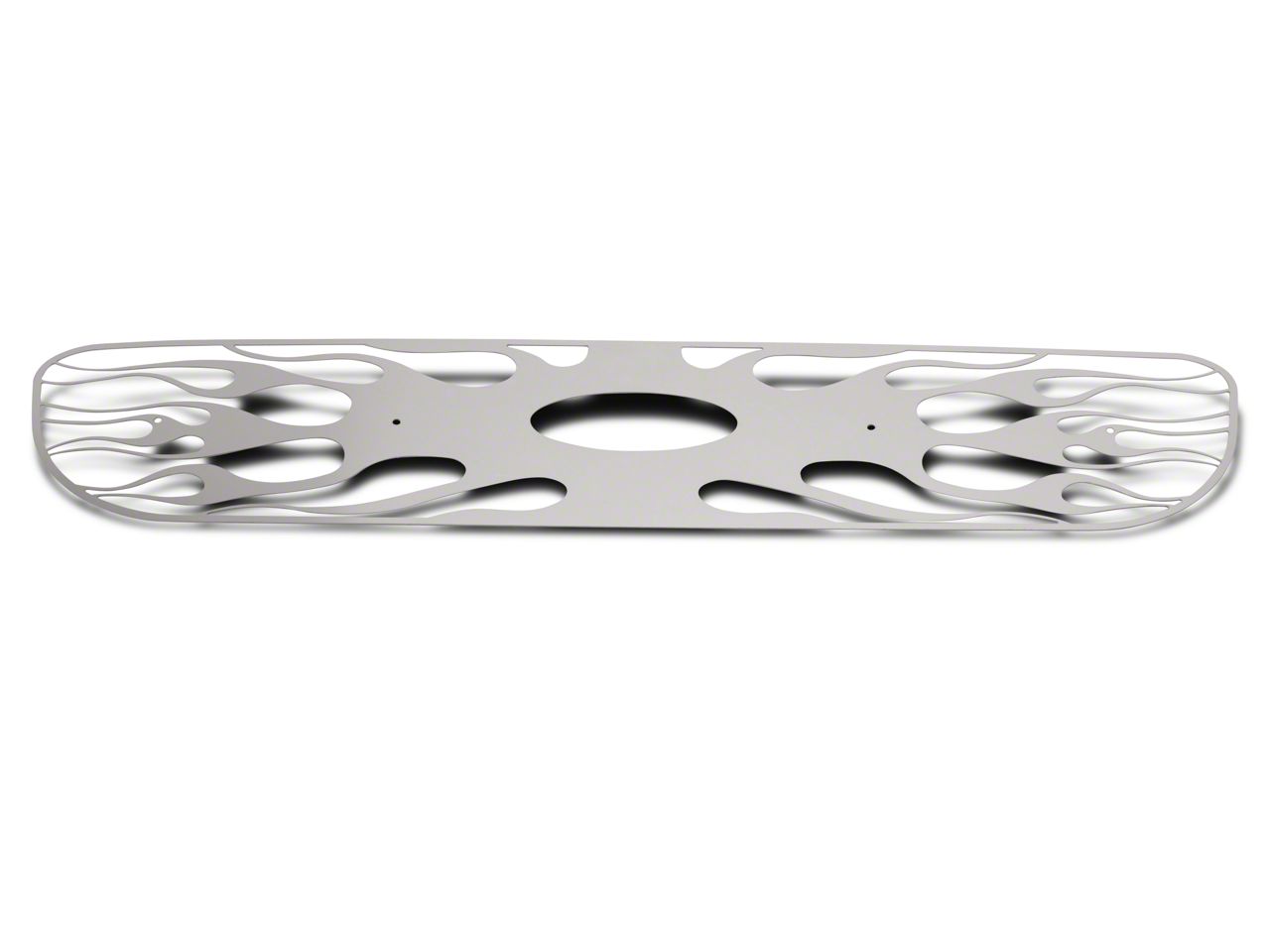 Flame On. Do you think your 1997-1998 F-150's front fascia lacks some style? Would you like to make your truck fiercer than ever? If the answers to these questions are 'yes', the Flaming Inferno Stainless Steel grille is just the right thing for your pickup. Give your truck that aggressive flame styling that will be sure to turn heads. The polished overlay grille also features a cutout for the Ford emblem, so you can still stay loyal to the maker.