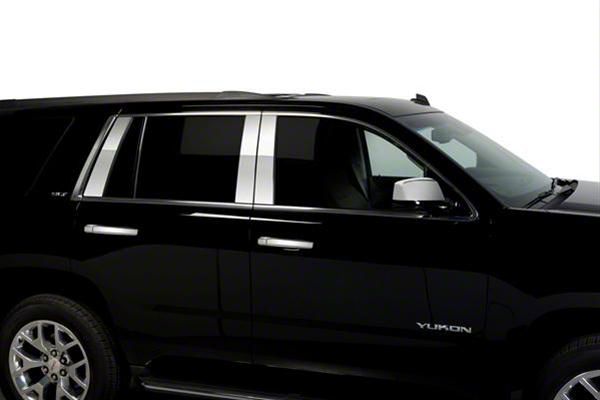 Design. The exterior of your Yukon is elevated with a refined and stylish appearance due to the use of stainless steel in constructing the pillar posts. The shiny surface adds a chic and elegant appearance that enhances the vehicle's overall aesthetic. These columnar supports have been crafted to blend flawlessly with the current fittings, elevating the aesthetic charm of your Yukon.