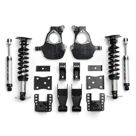Product Overview The QA1 lowering kit is an all-in-one solution for anyone looking to upgrade the suspension of their 07-18 Silverado 1500 / Sierra 1500's. This kit includes both QA1's front Pro Coil Coil-Overs, drop spindles, and Rear Drop Kit, which provide maximum adjustability to achieve the perfect lowered stance, while providing significant improvements to ride quality and performance. Ride Height AdjustabilityQA1 lowering kits offer easy and precise adjustments for your truck's stance. Fully threaded front coil-over shock bodies provide adjustment without the use of clumsy shims or spacers, while our rear drop kits offer 2" of adjustment to dial in the final rake of the truck. Front coil-overs provide a drop range of 3"-5" with the included drop spindles. Lower the rear with a drop range of 4-6". Heavy Duty Shock Design QA1 Engineers have tackled the challenge of supporting the weight and payload capacity of modern trucks by designing the heavy-duty version of our Pro Coil system, which features an upgraded shock with polyurethane bushings and a 1" chromoly T-bar. The system's new bushing design was specifically chosen to withstand the daily use of trucks, rather than using spherical bearings. Single-Adjustable Shocks QA1 Proma Star single adjustable shocks deliver exceptional ride quality and performance to your Silverado. With the simple turn of a dial, you can effortlessly switch between a comfortable cruise and a more aggressive feel.Rear Shackles and Hanger KitsQA1's Rear Shackle and Hanger Kits are the ultimate solution for lowering the rear of your truck without compromising ride quality. Made from heavy-gauge steel with a powder-coated finish and top-notch hardware, our kits guarantee long-lasting performance in any driving conditions.Easy, Bolt-In InstallationOur commitment to thoughtful product design is evident in every fully bolt-in kit we produce, which guarantees a hassle-free installation process.