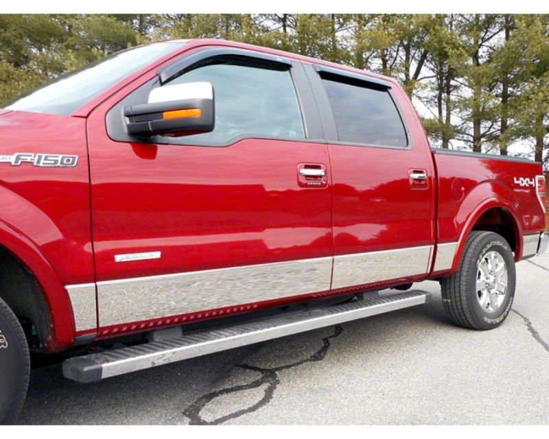 Rigid Build Quality. These rocker panel trim accents utilize high-quality stainless steel plates in their construction, offering durability and exceptional corrosion resistance. These steel plates are then precision-cut and formed to accurate measurements, providing an OE fit and clean finish. Rounding out their construction is a polished finish for a sleek style.