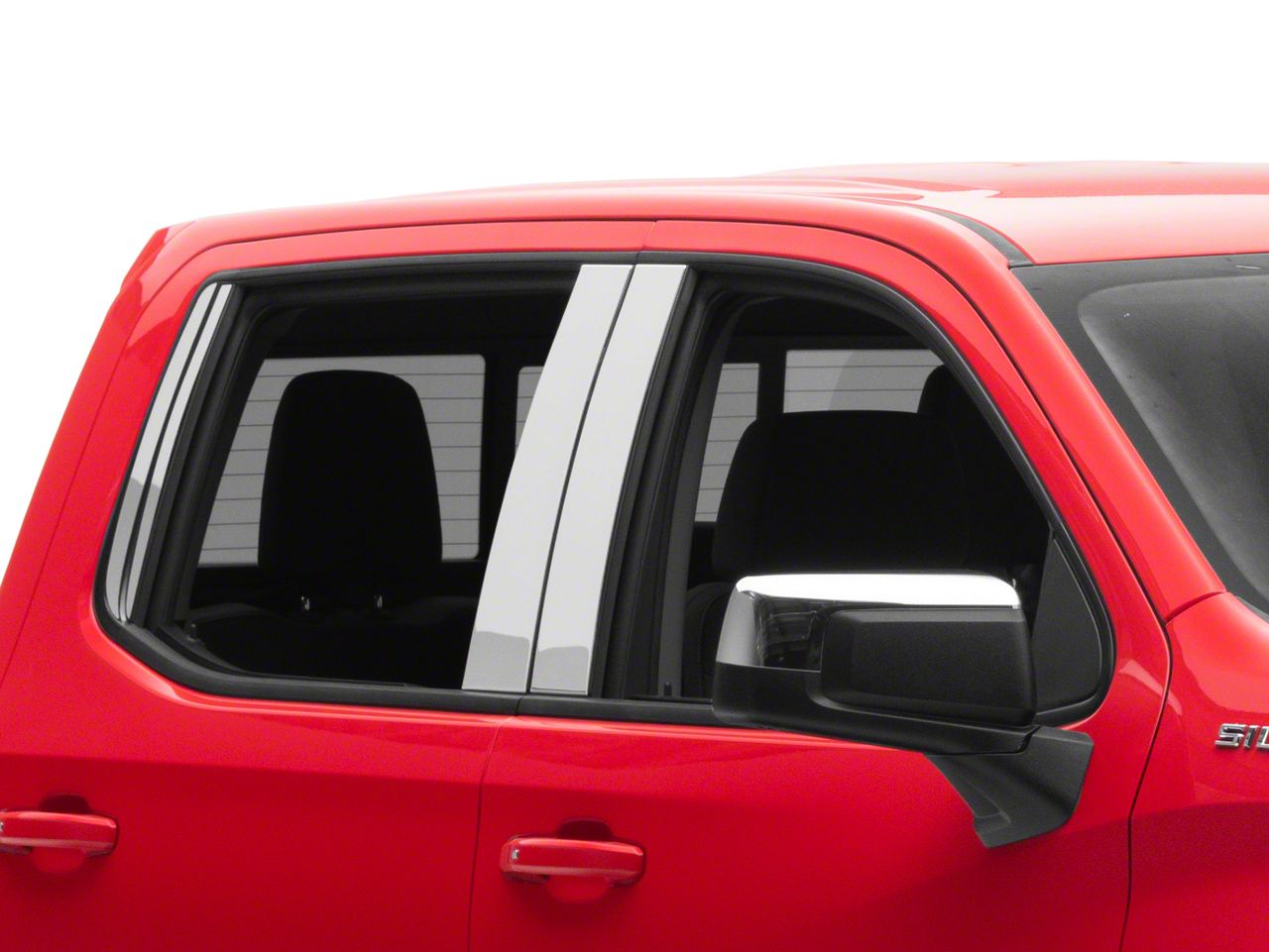 Application. These QAA Stainless Steel Pillar Post Trim; 8 Piece fit all 2019 to 2026 Chevrolet Silverado 1500 Crew Cab models.