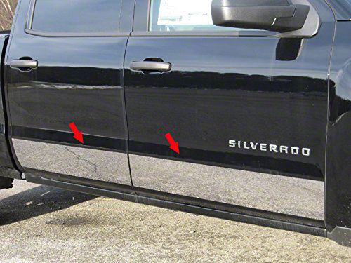 Application. This set of QAA Rocker Panel Trims, Upper Kit Without Moldings installs on all the 2014-2018 Chevrolet Silverado 1500 Crew Cab models.