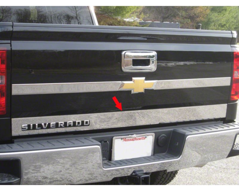 Application. This 1-Piece Stainless Steel QAA Tailgate Accent Trim fits all the 2014-2018 Chevrolet Silverado 1500 models.