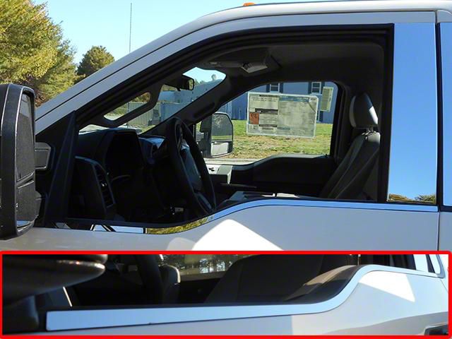 Application. This 2-piece stainless steel window sill trim fits all 2017-2020 Ford F-250 Super Duty Regular Cab, 2-Door, 8-Feet Bed models.