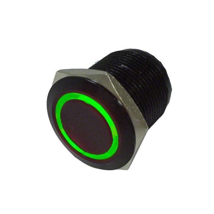 Quake LED Momentary Flush Mount Switch; Black/Green (Universal; Some Adaptation May Be Required)