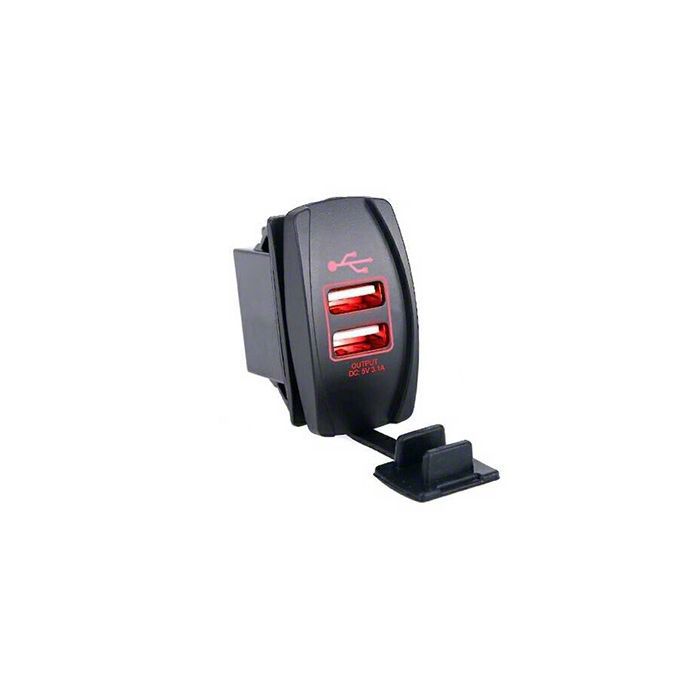 Quake LED Illuminated USB Rocker Switch; Red (Universal; Some Adaptation May Be Required)