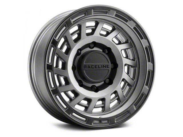 Raceline Halo Gunmetal with Black Lip 8-Lug Wheel; 18x9; -12mm Offset exudes sophistication with its finish, offering a sleek and modern appeal to any vehicle it adorns. The design is meticulously crafted to enhance the aesthetic of your vehicle, giving it a distinctive and upscale look. Perfect for those seeking to elevate their vehicle's style, this wheel blends seamlessly with both contemporary and classic vehicle designs, making it a versatile choice for a wide range of vehicles. Its robust construction ensures durability, making it a reliable choice for drivers who value both style and quality.