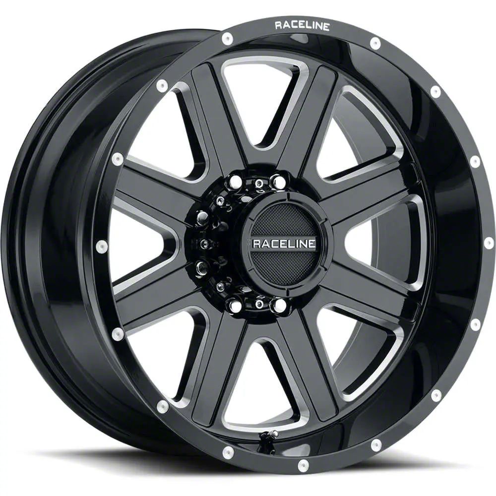 This 18x9 Raceline Hostage Gloss Black Milled 6-Lug Wheel is completed in a high-quality gloss black finish with steel milled accents that will create a striking appearance. There's a durable clear coat that protects against driving hazards.
