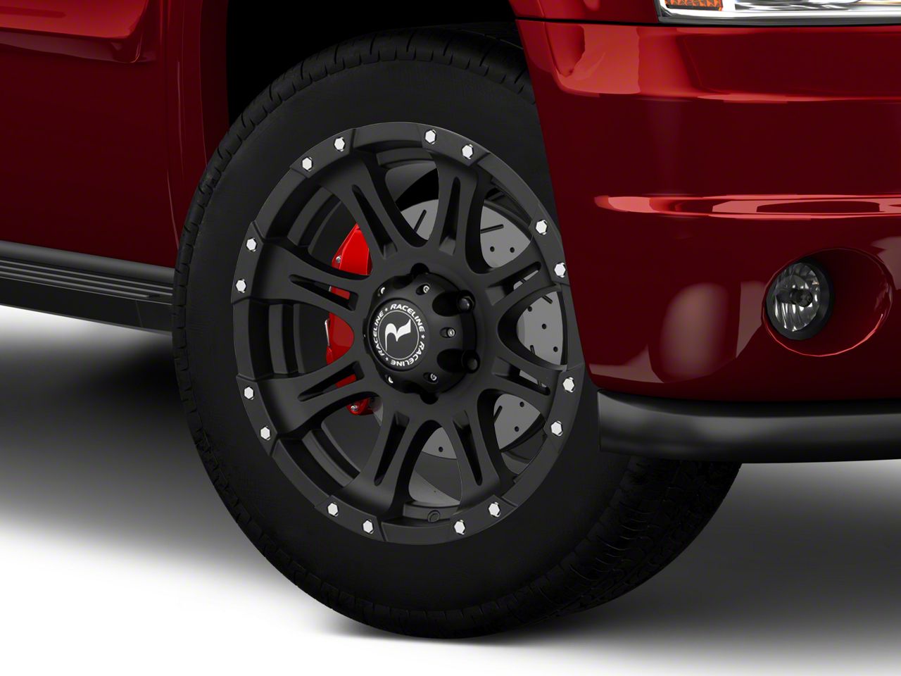 Raceline Raptor Black 6-Lug Wheel; 20x9; 0mm Offset - This wheel's elegant design will certainly enhance your vehicle's aesthetic, complementing its luxury and performance. The unique styling of this wheel makes it an ideal choice for a standout quality of your ride, reflecting the premium quality associated with the Raceline brand.