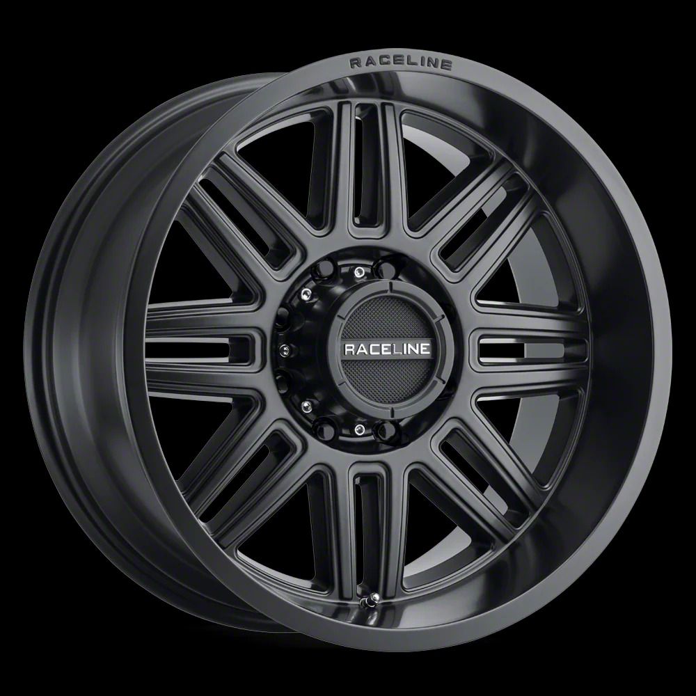 Raceline Split Satin Black 8-Lug Wheel; 18x9; -12mm Offset This Raceline Split Satin Black 8-Lug Wheel; 18x9; -12mm Offset brings a sleek and modern touch to your vehicle with its striking design. Its refined finish and bold styling make it an excellent choice for those looking to enhance their car’s visual appeal. Whether you're aiming for a sporty look or a more aggressive stance, this wheel stands out as a premium addition. Perfect for drivers who appreciate a stylish upgrade.