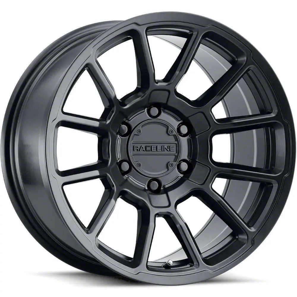 Raceline Gauge Satin Black 5-Lug Wheel; 18x9; 18mm Offset - Enhance your vehicle's style with the Raceline wheel. This wheel's distinctive design and finish complement your vehicle's aesthetics, making a bold statement. It's crafted to accentuate the unique character of your car, emphasizing a premium and robust appeal.