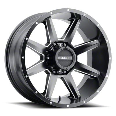 This 20x10 Raceline Stryker Satin Black Milled 6-Lug Wheel is completed in a high-quality satin black finish with steel milled accents to create an impressive appearance. There's a durable clear coat that protects against driving hazards.