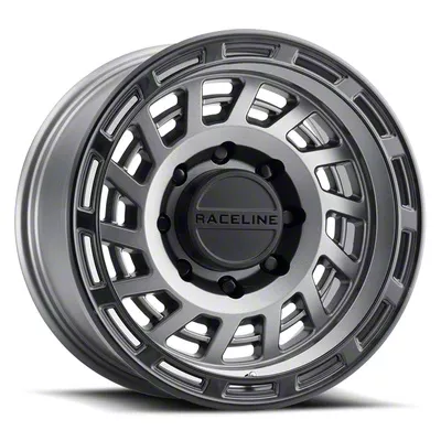 Raceline Halo Gunmetal with Black Ring 6-Lug Wheel; 18x9; -12mm Offset - Enhance your vehicle's style with the Raceline wheel. This wheel's distinctive design and finish complement your vehicle's aesthetics, making a bold statement. It's crafted to accentuate the unique character of your car, emphasizing a premium and robust appeal.