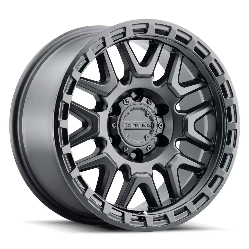 Raceline Krank Satin Black 6-Lug Wheel; 18x9; 18mm Offset. Enhance your vehicle's look with the Raceline Krank Satin Black 6-Lug Wheel. This premium wheel adds a touch of elegance and class to your vehicle, complementing its sophisticated aesthetic.