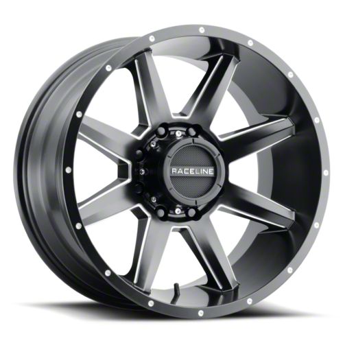 The 20x9 Raceline Stryker Satin Black Milled 6-Lug Wheel is completed in a high-quality satin black finish, with steel milled accents. Thanks to a durable clear coat, the finish looks amazing and also protects against the rigors of driving.