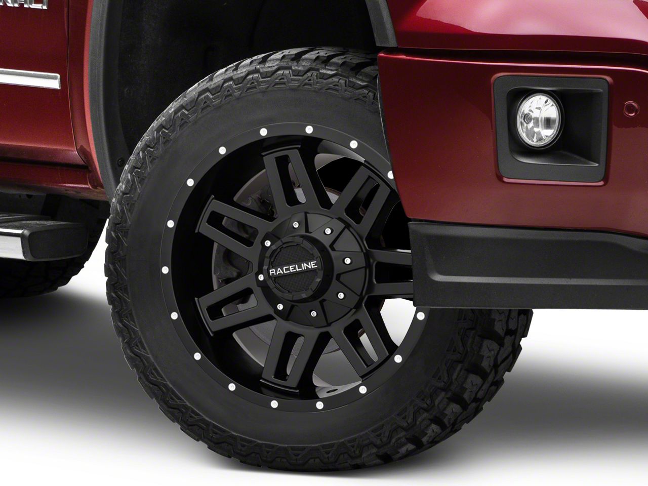 Raceline Injector Black 6-Lug Wheel; 20x9; 0mm Offset. Enhance your vehicle's look with the Raceline Injector Black 6-Lug Wheel. This premium wheel adds a touch of elegance and class to your vehicle, complementing its sophisticated aesthetic.