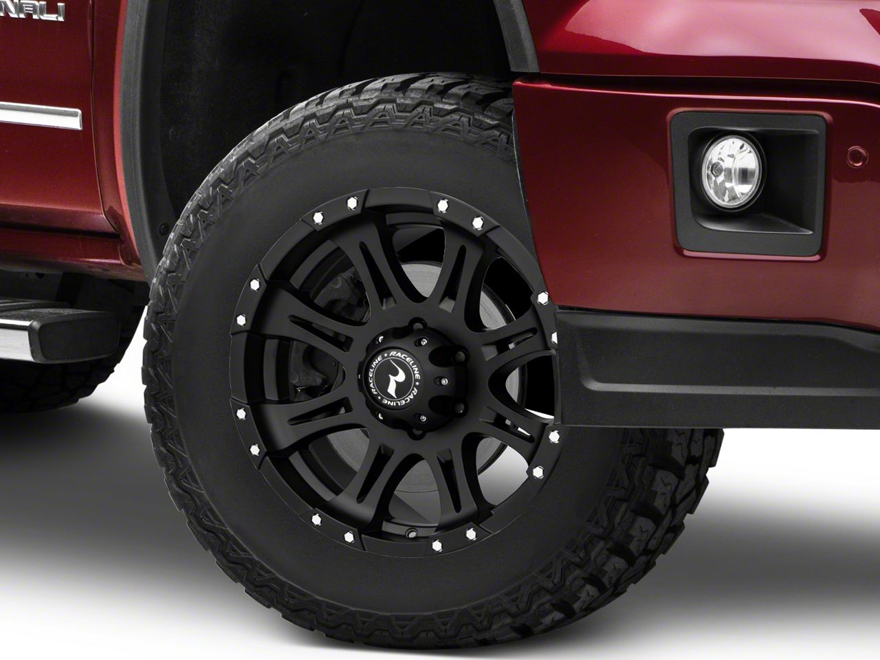 Raceline Raptor Black 6-Lug Wheel; 18x9; 25mm Offset - Experience the sleek elegance of the Raceline wheel. Its matte black finish adds a touch of sophistication to your vehicle, enhancing its overall appearance without compromising on durability. Perfect for a variety of vehicle styles, this wheel is a testament to the brand's commitment to quality and aesthetic excellence.