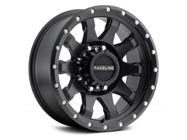 Raceline Clutch Matte Black 8-Lug Wheel; 20x9; 12mm Offset - This wheel's elegant design will certainly enhance your vehicle's aesthetic, complementing its luxury and performance. The unique styling of this wheel makes it an ideal choice for a standout quality of your ride, reflecting the premium quality associated with the Raceline brand.