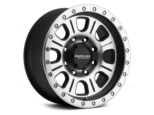 Raceline Monster Matte Black Machined 8-Lug Wheel; 17x9; -12mm Offset. Enhance your vehicle's look with the Raceline Monster Matte Black Machined 8-Lug Wheel. This premium wheel adds a touch of elegance and class to your vehicle, complementing its sophisticated aesthetic.
