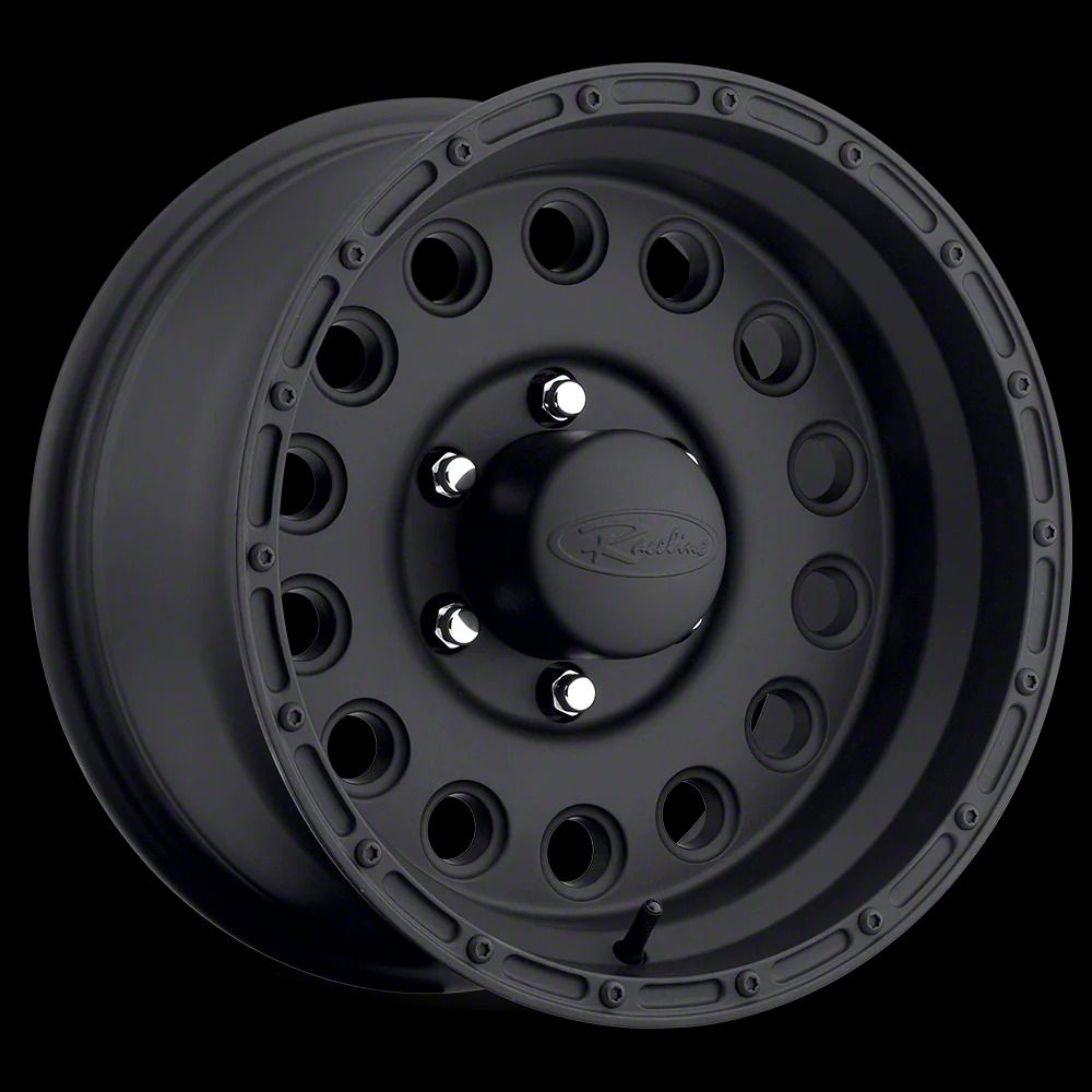 Raceline Rock Crusher Satin Black 8-Lug Wheel; 17x9; 0mm Offset This Raceline Rock Crusher Satin Black 8-Lug Wheel; 17x9; 0mm Offset brings a sleek and modern touch to your vehicle with its striking design. Its refined finish and bold styling make it an excellent choice for those looking to enhance their car’s visual appeal. Whether you're aiming for a sporty look or a more aggressive stance, this wheel stands out as a premium addition. Perfect for drivers who appreciate a stylish upgrade.