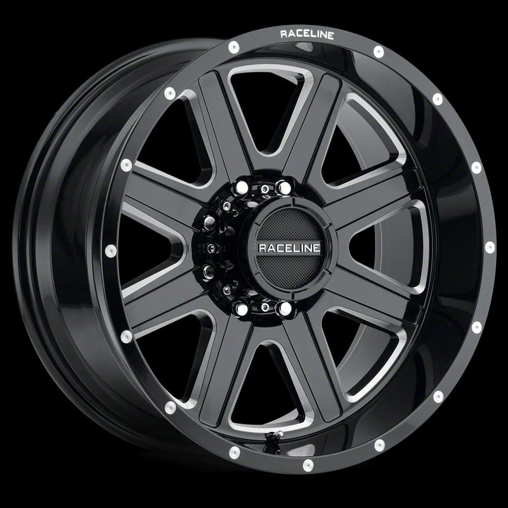 Raceline Hostage Gloss Black Milled 8-Lug Wheel; 20x9; 0mm Offset This Raceline Hostage Gloss Black Milled 8-Lug Wheel; 20x9; 0mm Offset brings a sleek and modern touch to your vehicle with its striking design. Its refined finish and bold styling make it an excellent choice for those looking to enhance their car’s visual appeal. Whether you're aiming for a sporty look or a more aggressive stance, this wheel stands out as a premium addition. Perfect for drivers who appreciate a stylish upgrade.