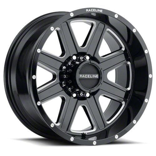 This 18x9 Raceline Hostage Gloss Black Milled 6-Lug Wheel is completed in a high-quality gloss black finish with steel milled accents that will make the wheel the envy of everyone. There is a durable clear coat that protects against driving hazards.