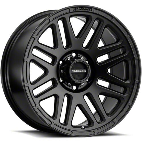 Raceline Outlander Satin Black 8-Lug Wheel; 18x9; -12mm Offset - Enhance your vehicle's style with the Raceline wheel. This wheel's distinctive design and finish complement your vehicle's aesthetics, making a bold statement. It's crafted to accentuate the unique character of your car, emphasizing a premium and robust appeal.