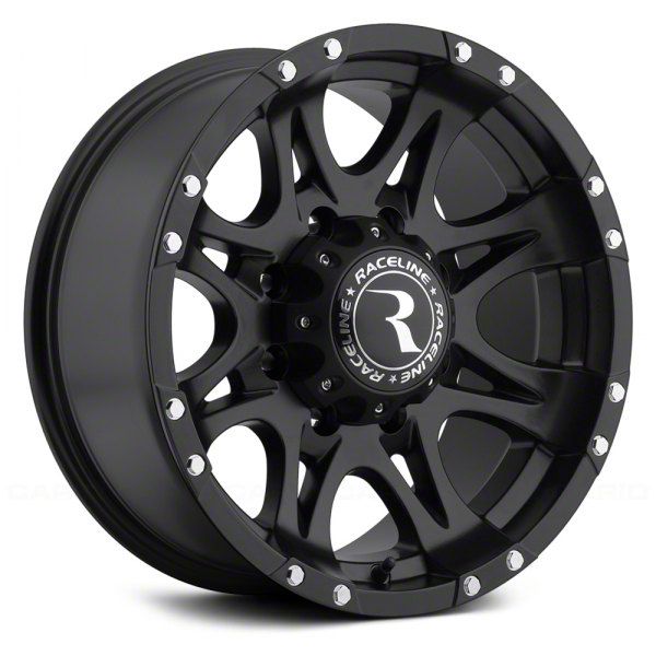 Raceline Raptor Satin Black 8-Lug Wheel; 18x9; 20mm Offset - Enhance your vehicle's style with the Raceline wheel. This wheel's distinctive design and finish complement your vehicle's aesthetics, making a bold statement. It's crafted to accentuate the unique character of your car, emphasizing a premium and robust appeal.