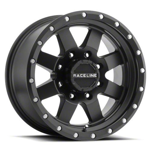 Raceline Defender Satin Black 8-Lug Wheel; 18x9; 18mm Offset - Enhance your vehicle's style with the Raceline wheel. This wheel's distinctive design and finish complement your vehicle's aesthetics, making a bold statement. It's crafted to accentuate the unique character of your car, emphasizing a premium and robust appeal.