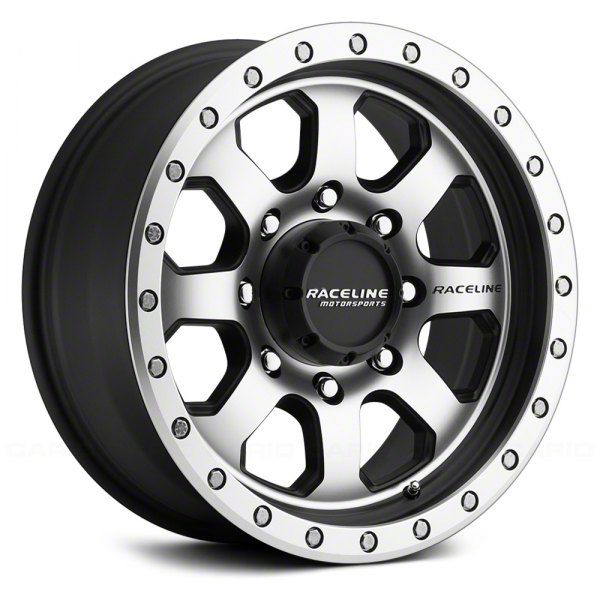 Raceline Avenger Black and Machined 8-Lug Wheel; 17x9; -12mm Offset. The Raceline Avenger Black and Machined 8-Lug Wheel offers a striking balance of style and refinement. Its unique design accentuates the vehicle's aesthetic, while the premium construction underscores its robust nature. This wheel is a perfect choice for those seeking both elegance and a strong visual statement.